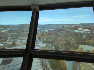 The Sunsphere, Knoxville, Tennesee She caught up with Fatima from UKAEA, the technical lead for the GRADE project. They also visited the Sunsphere, an iconic 1982 World’s Fair landmark that offers panoramic views of Knoxville.